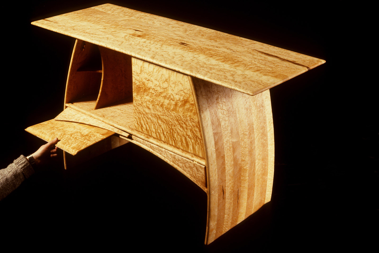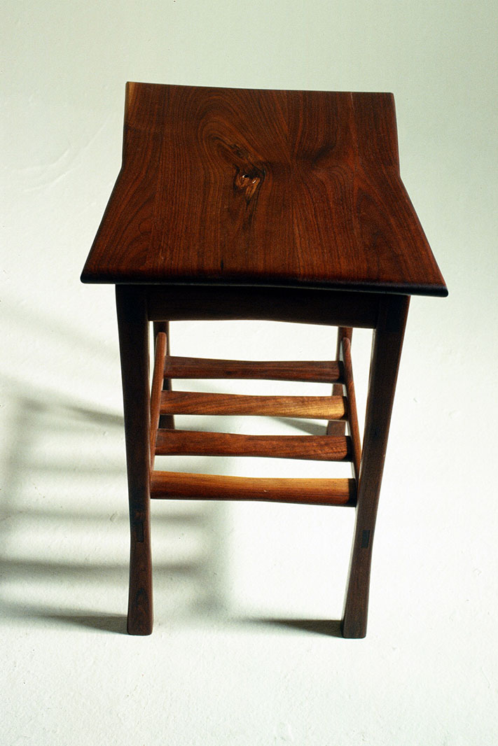 By happenstance, right after graduation from Northern Michigan University in 1980, I took up residency in the only safe haven I had ever known: the wood shop. I had no place else to go. It was summer, so most of the other students were gone. And there was a storage room attached to the sculpture studio that nobody ever went in. It was padlocked shut, but there was a gap in the walls I could just squeeze through. So I’d work in the shop until 10 or so, then retire to the storage room, where I had a sleeping bag, a hot plate and some bags of noodles. Though I lived in a constant state of cat and mouse with campus security, somehow I cooked, slept and worked all under the radar, building tables, etc., for friends and family and continuing to do the only thing I ever wanted to do: design and build furniture.